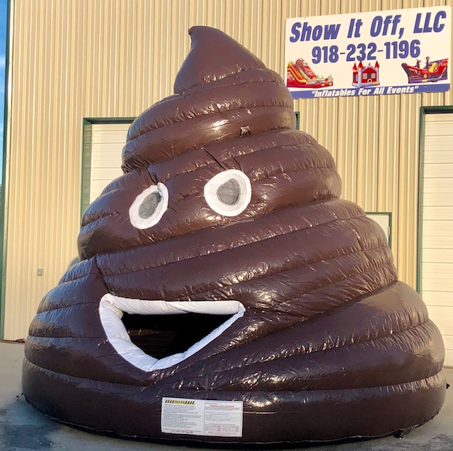 You’ve been able to get the Poop emoji in hats, sheets, pillows, coffee, cups, cushions and much more. NOW, be the first to rent the Poop Jumper, also known as the Lil Stinka inflatable in our brand new pile of fun!