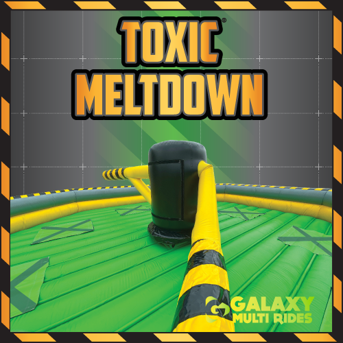Toxic Meltdown is our 8-player action game, which challenges your stamina, agility and reactions. Not one but two spinning boom arms try to knock you off your podium. You have to duck underneath or jump over the foam boom. Who will be the last one standing?
